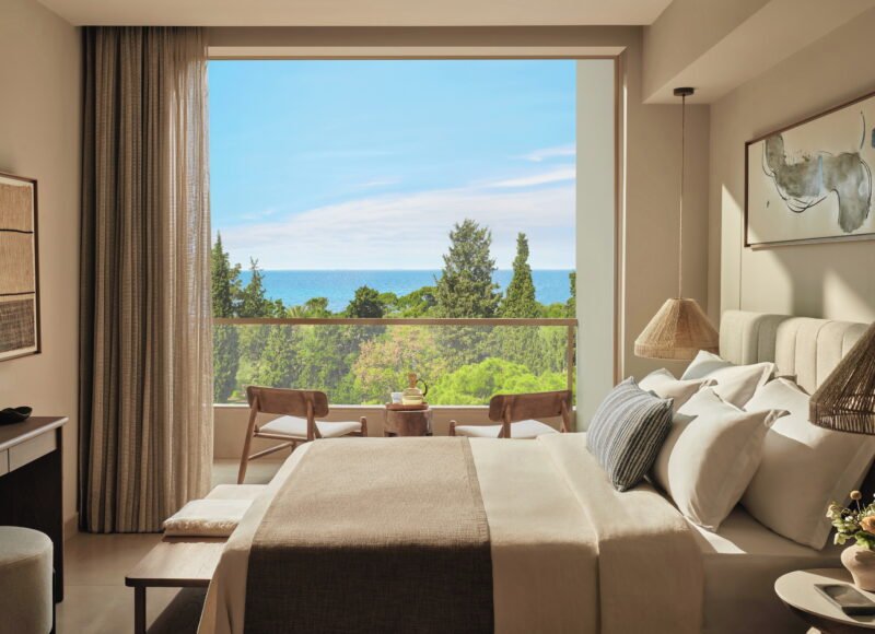 Cazarea se face in camere luminoase si aerisite care ofera privelisti uimitoare la Marea Egee sau la gradinile frumos amenajate. Toate beneficiază de o terasa privata sau un balcon, baie cu dus cu efect de ploaie, TV cu ecran plat, minibar si aer conditionat.